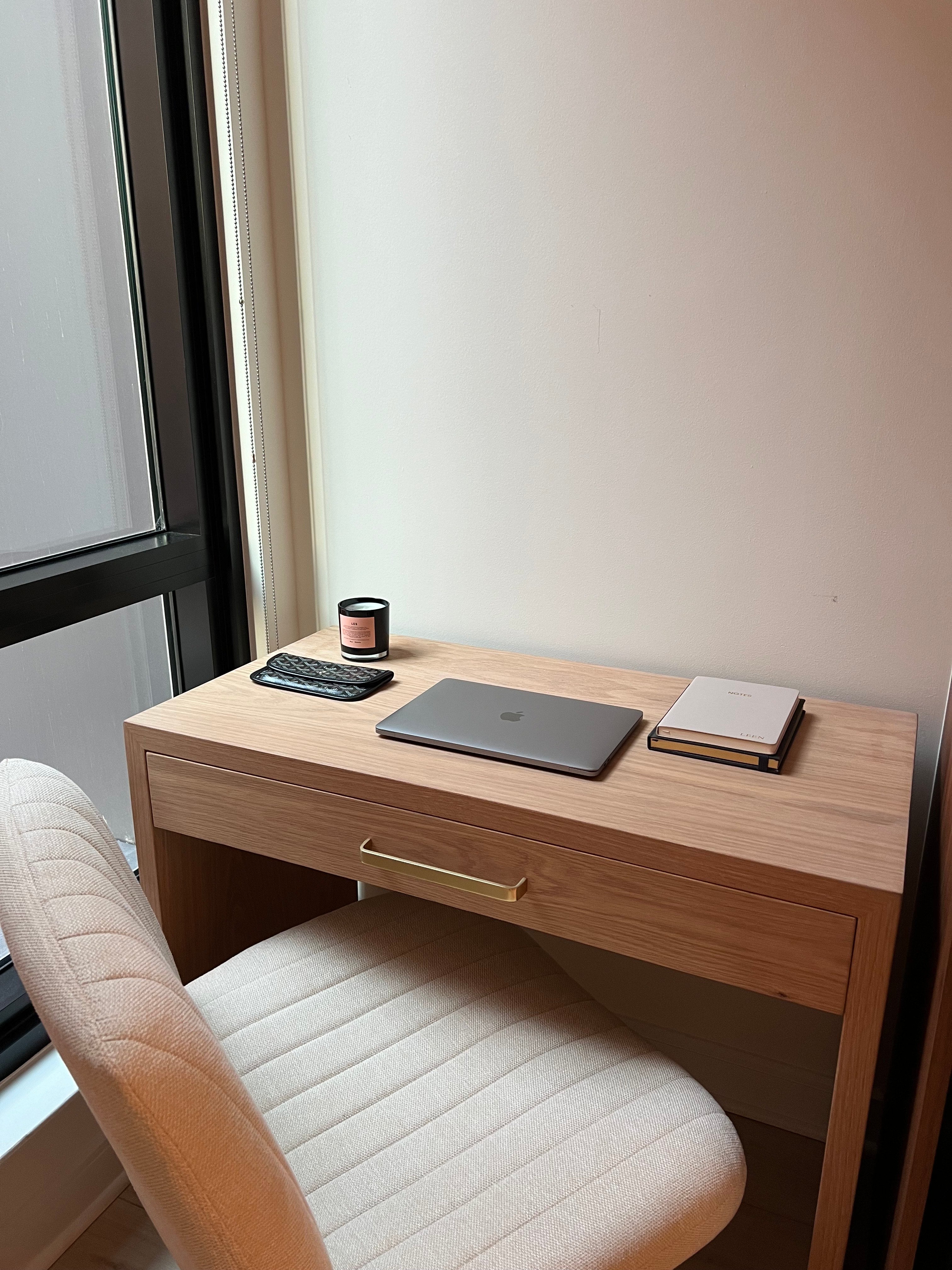 Bespoke 30" White Oak Desk featuring Single a Soft Close Drawer and Brass Accents Shipped to Washington DC