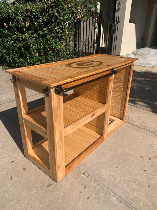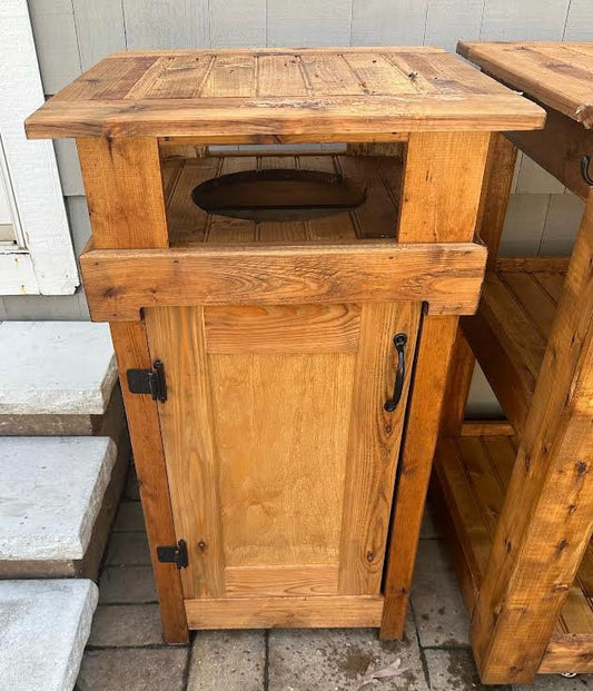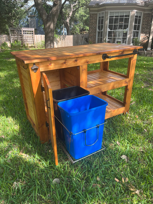 Sliding Trashcan Cedar Bar Cart; Outdoor Kitchen Cabinet