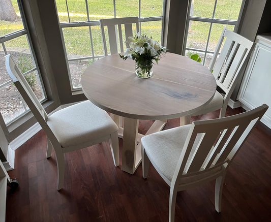 Round Dining Table with Matching, Geometric Base || Circular Hardwood Pedestal Table || Breakfast Nook Table || Ash or Hickory