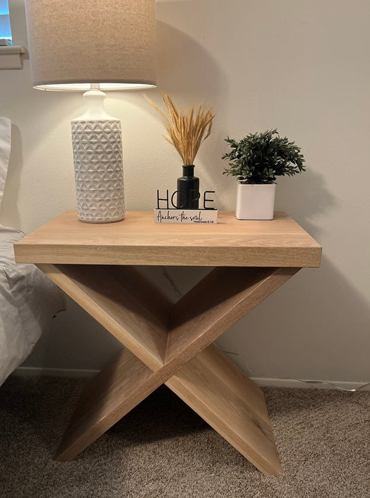 Solid Hardwood White Oak Nightstand Set, Accent Tables || Elegant White Oak X-Base Nightstands || Set of 2 Bedroom Accents