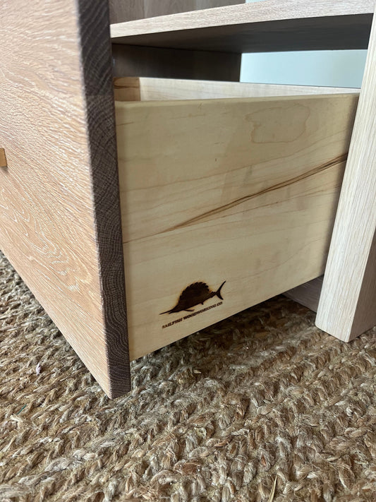 Modern White Oak Nightstand || Soft Close Drawer Bedside Table with Shelf || Set of 2 || Hardwood White Oak