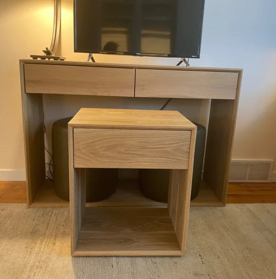 I am so pleased with my artisan-crafted nightstand! I asked Austin to make a custom nightstand based on this design to complement my Ethnicraft Nordic Console. He was very open to all of my specifications (we altered dimensions, wood thickness and finish) to match my console. He even provided a wood sample with the finish Ethnicraft uses so I could see how well the two pieces would work in the same space. I am stunned by how lovely the nightstand turned out. It is incredibly well-made and matches my Ethnicraft console so beautifully. Even all the detail work! I am very grateful that Austin took the time to work with me and created such a stunning custom matching piece. Adam, who delivered my nightstand, was such a pleasure, as well! I highly recommend Austin. His workmanship is beautiful and his customer service is excellent! -Susan on Feb 26, 2024 via Etsy
